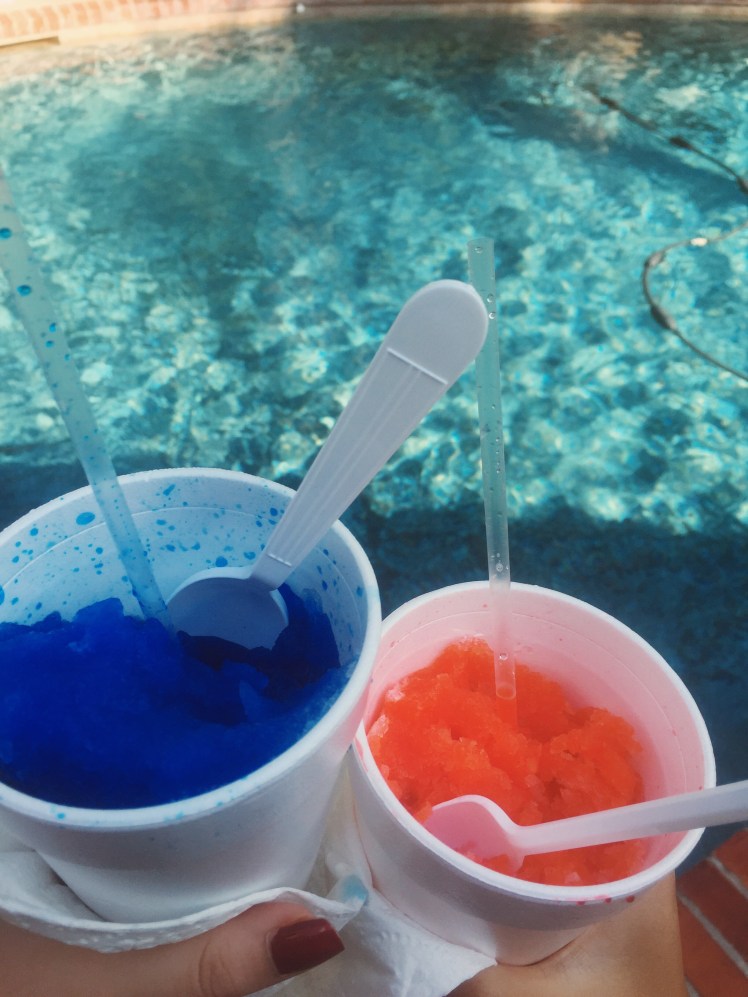 When I first got there I took a picture with my baby cousin Evan who happens to enjoy tormenting me! But who could stay mad at him when he has model legs?? He’s practically as tall as me and he’s only 8! Another perk of being in Louisiana is the sno cones! They’re much cheaper than in Texas. Personally I like the stuffed snowballs (sno cones with ice cream tucked away in the center.) Just don’t get grape flavor because it tastes like poison.