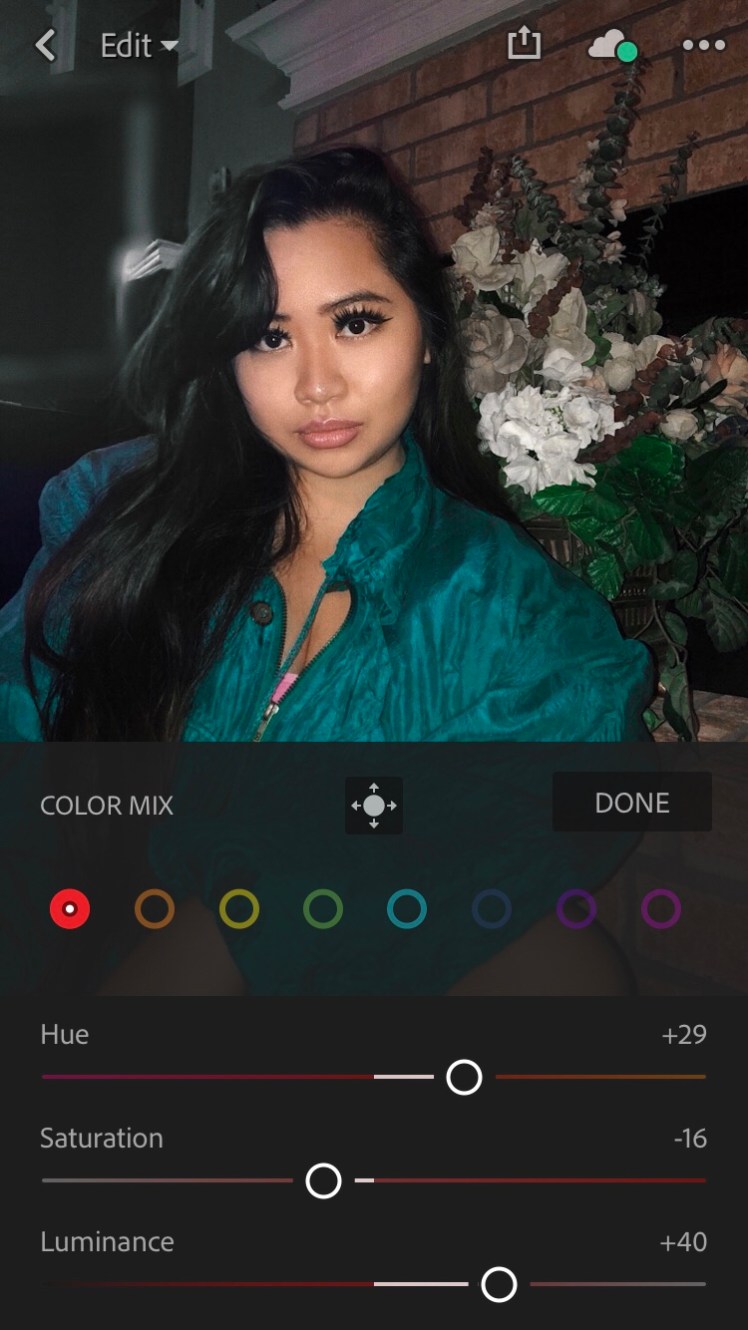 2. You can use apps like Light Room to alter individual colors and focus on making a single color reappear within each photo, even if it wasn’t there to begin with.