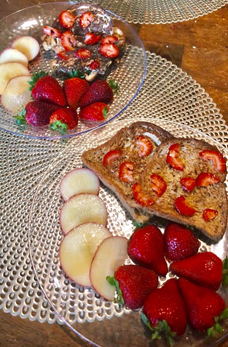 - Top it off with some freshly sliced strawberries, and powdered sugar.